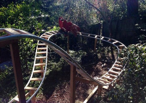 美国男子威尔·潘博为儿子在自家后院修建55米长过山车(网页截图)