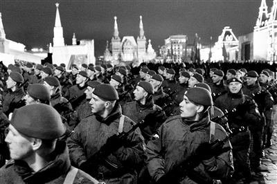 5月5日,参加胜利日阅兵彩排的俄罗斯士兵列队通过红场新华/美联