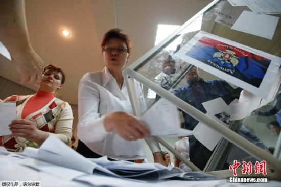 当地时间2014年5月11日,乌克兰东部地区选举工作人员开始公投计票工作。