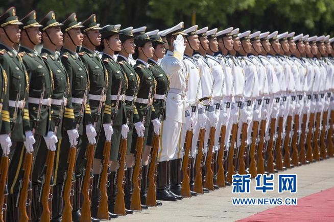 央广网北京5月12日消息(记者温飞)土库曼斯坦总统库尔班古力·别尔德穆哈梅多夫访问中国,在人民大会堂东门外广场的欢迎仪式上,飒爽英姿的13名女兵正式亮相解放军陆海空三军仪仗队接受检阅,这也成为我军史上的首批仪仗女兵。