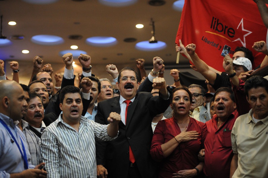 5月13日,洪都拉斯国会议员、前总统曼努埃尔 塞拉亚及夫人与其政党Libertad y Refundacion在国会大楼前高唱国歌抗议,向政府要求发言权。抗议者与防暴警察发生冲突,遭到催泪弹驱逐。