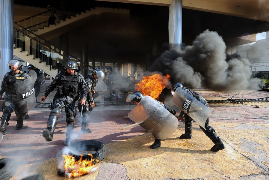 5月13日,洪都拉斯国会议员、前总统曼努埃尔 塞拉亚及夫人与其政党Libertad y Refundacion在国会大楼前抗议时遭催泪弹驱逐。抗议者向政府要求发言权,与防暴警察发生冲突。
