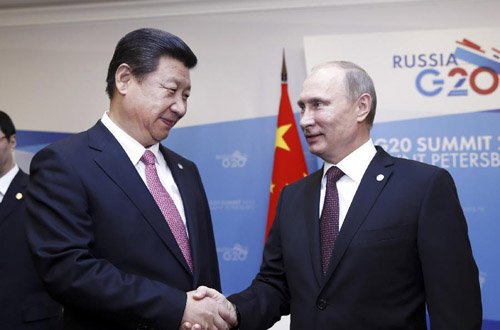资料图片:2013年9月5日,国家主席习近平在圣彼得堡会见俄罗斯总统普京。 新华社记者 鞠 鹏摄