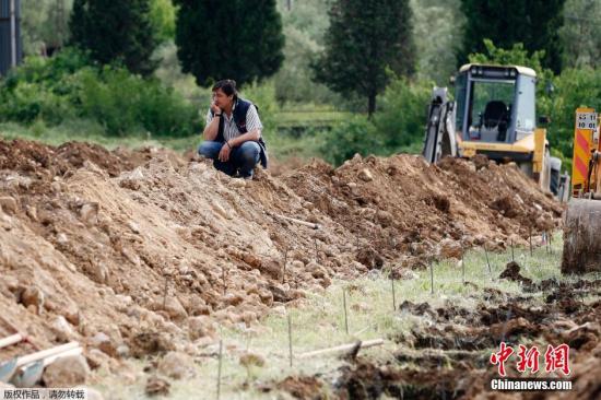 当地时间2014年5月14日,土耳其马尼萨,民众为矿难遇难者举行简易葬礼。土耳其西部一座煤矿于当地时间13日发生爆炸事故,造成严重伤亡。