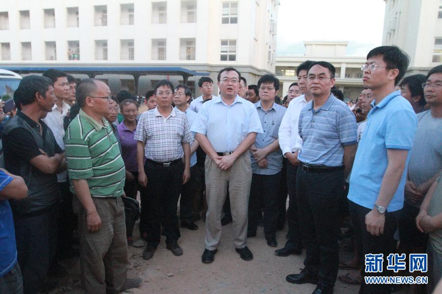 5月18日,中国政府工作组组长、外交部部长助理刘建超(中)在越南河静省永安港询问情况。在安排中国伤员乘中国政府包机回国后,中国政府跨部门工作组18日赶赴越南河静省中冶台塑钢厂项目基地,看望在暴力事件中受冲击的中国工人。 新华社记者 章建华 摄