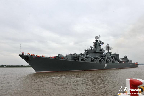 5月18日,俄罗斯海军光荣级“瓦良格”号导弹巡洋舰是俄罗斯太平洋舰队的旗舰。摄影:苏银成