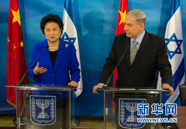 5月19日,中国国务院副总理刘延东(左)在耶路撒冷会见以色列总理内塔尼亚胡。 新华社记者李睿摄