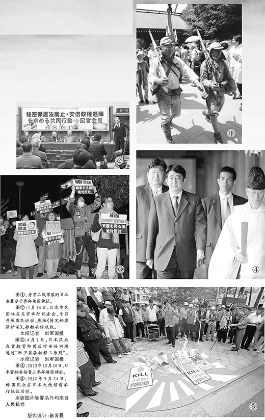 公开否认侵略战争历史,力求修改和平宪法,强调实行所谓集体自卫权,企图进一步扩大自卫队的行动范围,挑战“战后体制”