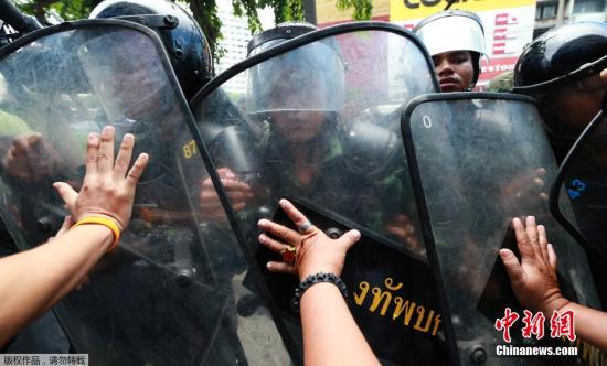 当地时间5月24日,泰国军方发动政变引发民众强烈不满,示威者走上曼谷街头抗议军事政变,并与军警爆发激烈的冲突,多名抗议者遭逮捕。