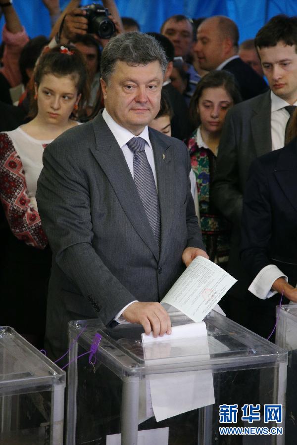5月25日,波罗申科在首都基辅一处投票站投票。新华社发(伊万·捷列什科摄)