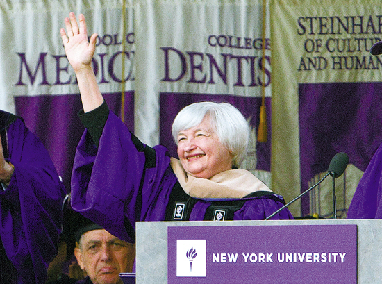 美联储主席耶伦21日现身纽约大学为毕业生做演讲