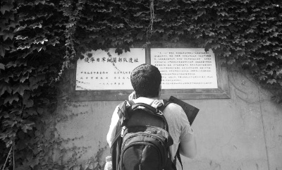 神乐署大门东南方的围墙上,一块上刻“侵华日军细菌部队遗址”几个字的汉白玉石碑仍铭记着那段历史 摄/法制晚报记者 付丁