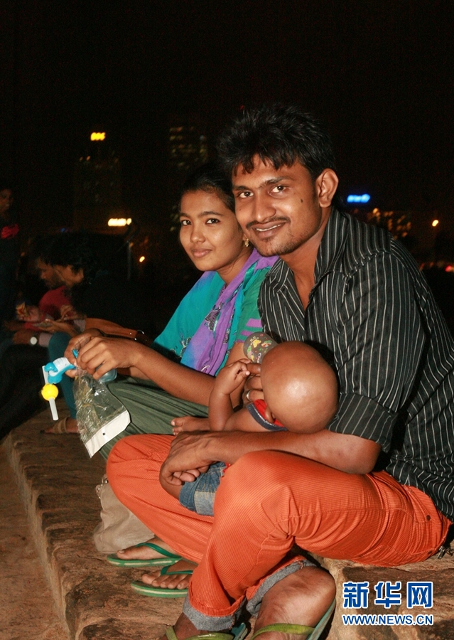 科伦坡海滨广场上,一名男子抱着熟睡的孩子享尽天伦之乐。新华网记者 黄海敏摄