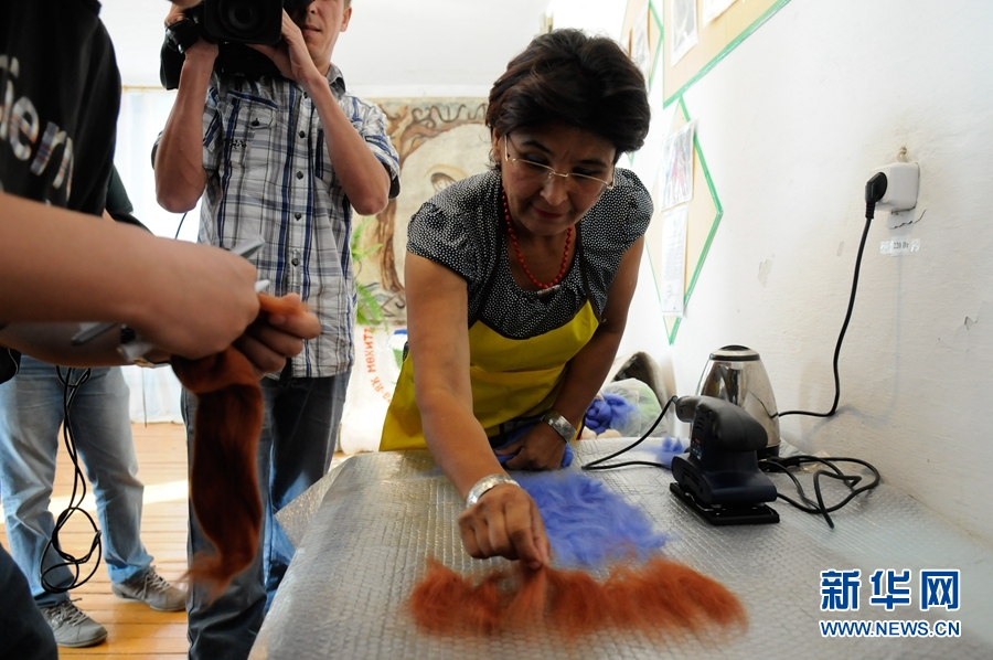 巴什基尔妇女展示手工羊毛制品制作过程。新华网记者 刘红霞 摄
