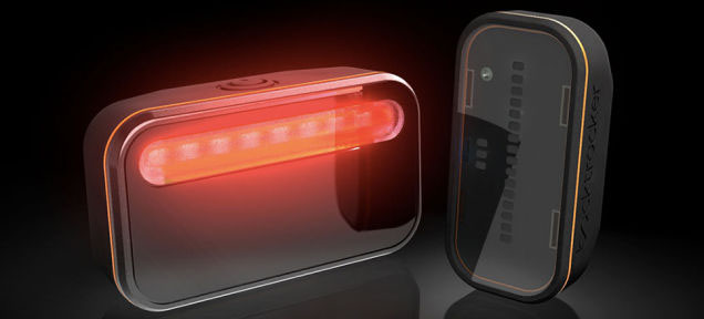 Backtracker系统使用两个装置捆绑在你的自行车上共同协作。雷达发射器装在你座位的背后,提供了额外的视线来提醒你后面有车辆接近。LED指示器安装在自行车的车把手上,提示你背后驶来的车辆速度有多快,如果有必要让骑车人驶离车道保证安全时,LED指示器也会发出警示。