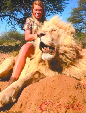 据介绍,琼斯从9岁开始就跟着父亲在非洲学习打猎,如今她最喜欢挑战的是徒手捕捉难度最大的“非洲五霸”,即狮子、非洲象、非洲水牛、豹和白/黑犀牛。其中,白犀牛属于稀有动物,总数量只有20000只。因为琼斯在狩猎上表现出来的“强烈热情”,有南非的动物保护组织已提出禁止琼斯再到非洲去狩猎。 (灵犀)