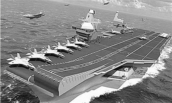 据悉,在CVF计划中,伊丽莎白女王级航母计划建造两艘。该舰满载排水量将达到70600吨。目前,两舰的建造成本已达到62亿英镑(约合105亿美元),而最初估计的数字约为38亿英镑。