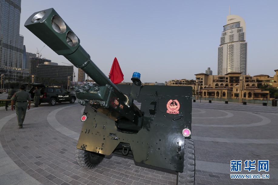 在每年的斋月中,很多中东阿拉伯国家有鸣放开斋炮的传统。在每天的日落时分,斋戒了一天的穆斯林习惯在听到开斋炮声后才开始进食斋饭。迪拜市内目前共有5座1945年英国制造的开斋礼炮,在进入斋月和开斋节当天鸣放两声,斋月的其他日子里只鸣放一声。 (维克多·贝萨 摄)