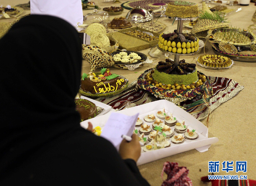 图为用椰枣制成的各种甜点和美食。新华社记者安江 摄