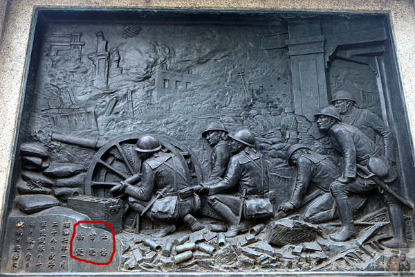 靖国神社大门两侧各有一座纪念碑,碑底座有浮雕,一边描绘的是中日甲午海战,另一边是抗日战争时期日军入侵上海。都是从正面描绘当时日本军队如何“英勇”作战,是不折不扣美化当年侵略战争的做法。