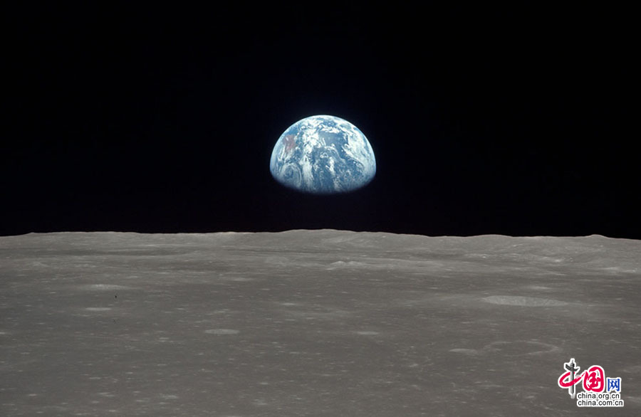 阿波罗11号飞船拍摄的地球在月球地平线上升起的照片。