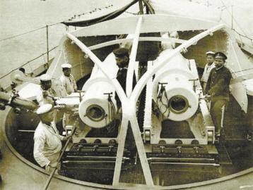 日军掳获“济远”舰后,操作舰首主炮。