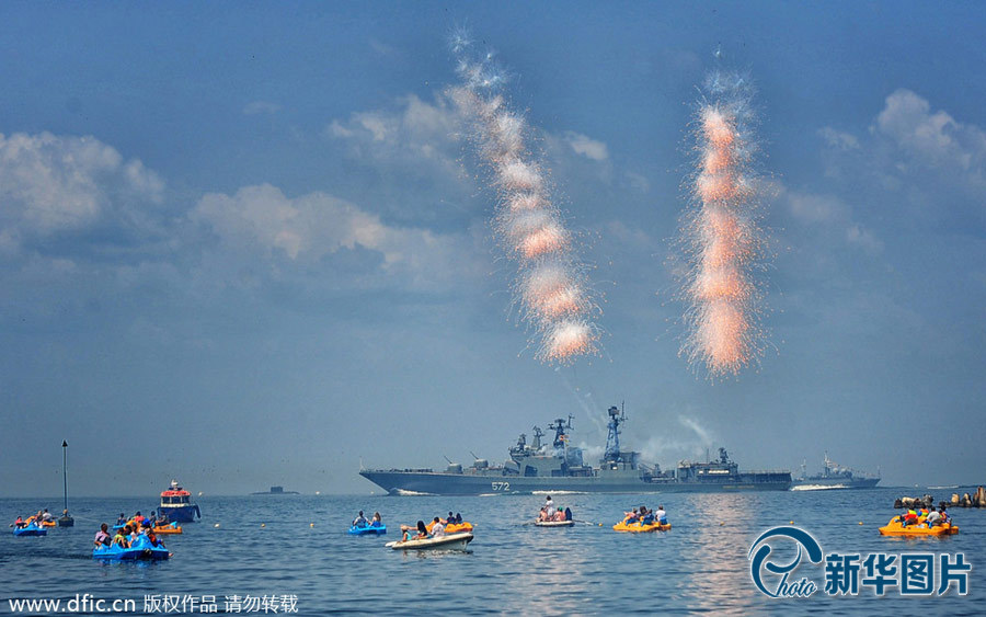 当地时间2014年7月27日,俄罗斯符拉迪沃斯托克,太平洋舰队舰船参加海军日大阅兵。来源:东方IC