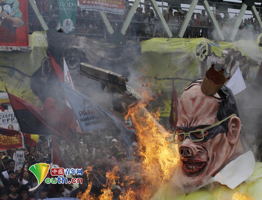 菲律宾民众抗议阿基诺 遭警方动用高压水枪驱逐(高清组图)