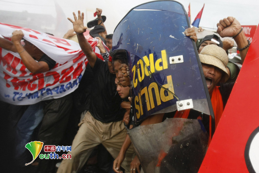 菲律宾民众抗议阿基诺 遭警方动用高压水枪驱逐(高清组图)