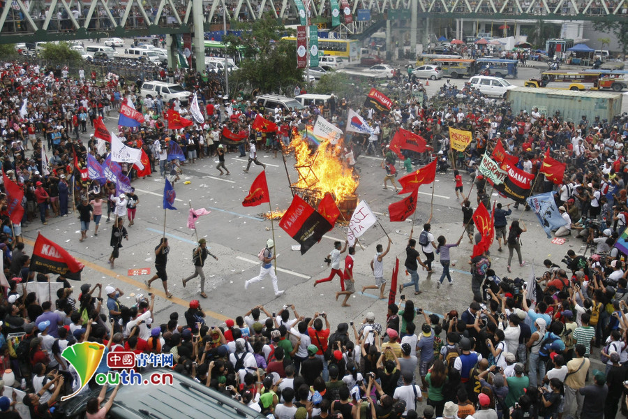 菲律宾民众抗议阿基诺 遭警方动用高压水枪驱逐(高清组图)