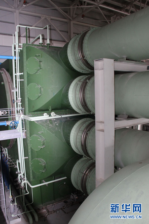 8月14日,白俄罗斯总统卢卡申科专程参观了由中国机械设备工程股份公司(CMEC)总承包、并于今年3月提前几乎半年竣工的白俄罗斯别列佐夫电站改扩建项目中的7号机组建设项目。图为建设项目厂房内整齐排列的设备和管道。记者 陈俊锋摄