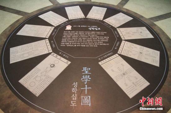 资料图:3月24日,韩国庆尚北道旅游本部部长李义道在安东市表示,作为韩国传统文化的发源地,庆尚北道继续在中韩两国文化交往的基础之上,加强文化旅游事业。图为李滉先生在中国传统文化基础上创建的《圣学十图》。中新社发 潘旭临 摄
