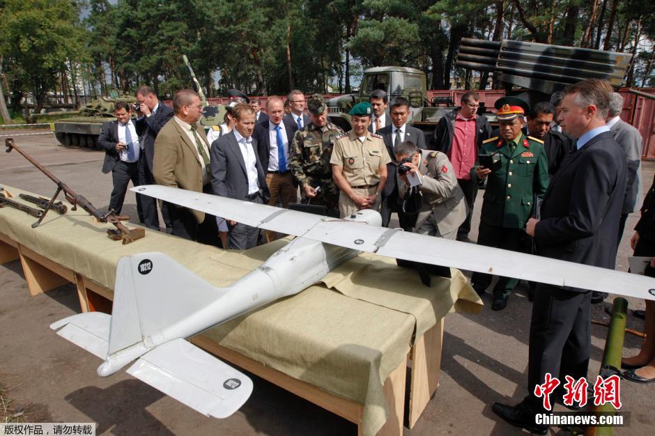 当地时间8月29日,乌克兰基辅,乌克兰政府向外国驻乌使馆武官展示在冲突中从民间武装手中缴获的武器和装备。