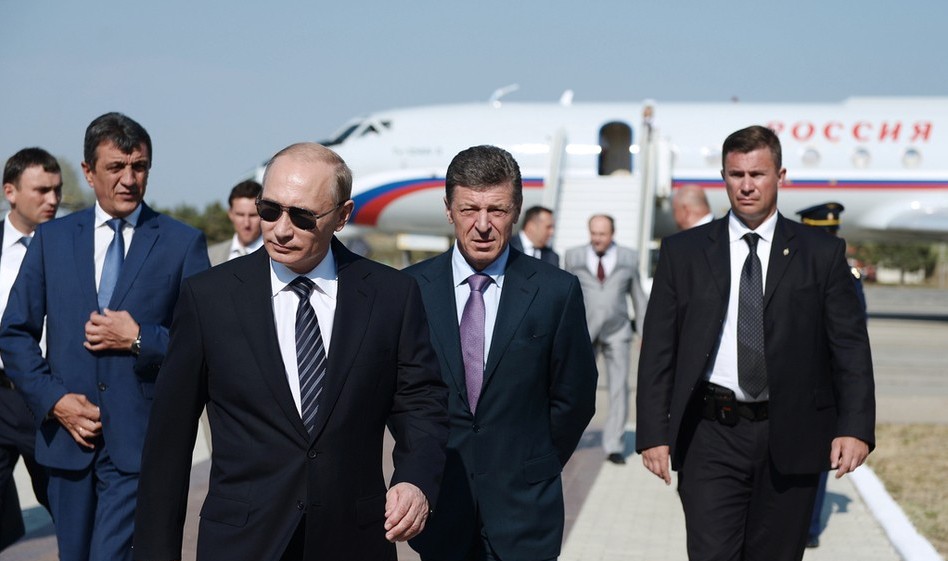 当地时间2014年8月13日,克里米亚,普京戴墨镜现身机场。