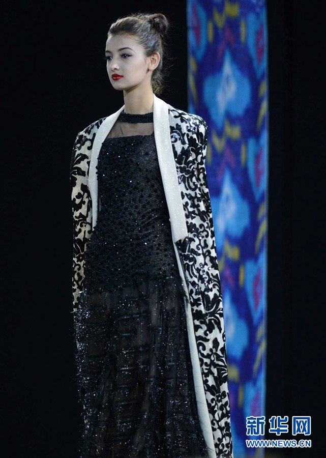 1月18日晚,乌兹别克斯坦塔什干国家艺术中心“扎尔海纳尔”,模特在展示乌兹别克斯坦传统服装。当晚,为期两天的乌兹别克斯坦2015民族手工艺术节在塔什干国家艺术中心“扎尔海纳尔”落下帷幕。闭幕式上,乌兹别克斯坦服装设计师们为观众展示出一系列精彩的最新民族服饰潮流时装展,艾提拉丝布和巴旦木花制作的传统服饰,更是把古老与现代艺术的质感和色彩融为一体,让在场观众大饱眼福。新华网记者 沙达提 摄