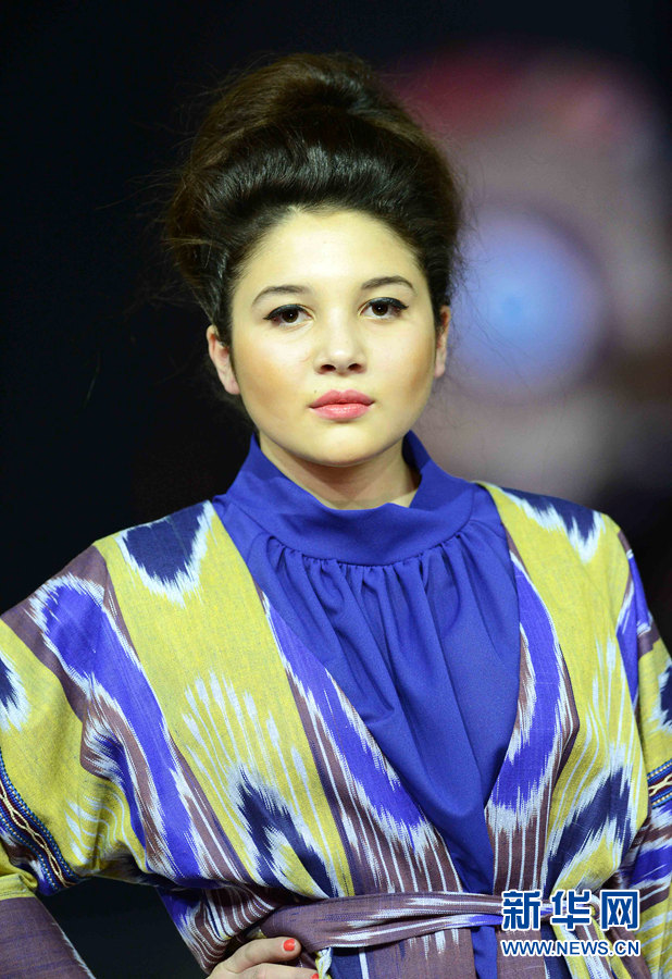 1月18日晚,乌兹别克斯坦塔什干国家艺术中心“扎尔海纳尔”,模特在展示乌兹别克斯坦传统服装。当晚,为期两天的乌兹别克斯坦2015民族手工艺术节在塔什干国家艺术中心“扎尔海纳尔”落下帷幕。闭幕式上,乌兹别克斯坦服装设计师们为观众展示出一系列精彩的最新民族服饰潮流时装展,艾提拉丝布和巴旦木花制作的传统服饰,更是把古老与现代艺术的质感和色彩融为一体,让在场观众大饱眼福。新华网记者 沙达提 摄