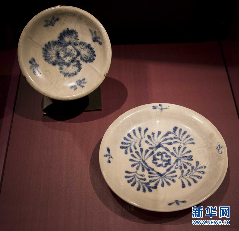 从“黑石号”沉船上打捞起的唐青花瓷器。新华网 邹峥摄