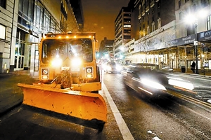 1月26日,铲雪车在纽约街头严阵以待。 美联