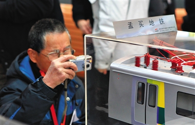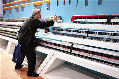 2012年第十一届中国国际现代化铁路技术装备展览会,参观者尤为关注中国南北车的发展。 新京报记者侯少卿摄