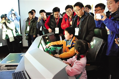 南车公众日活动中,小车迷体验模拟驾驶。