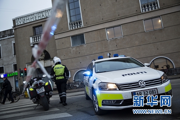 2月14日,在丹麦首都哥本哈根,警察在枪击现场附近执勤。