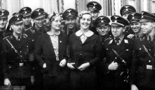 尤妮蒂·米特福德(左)姐妹与德国纳粹党成员在一起。(资料图)