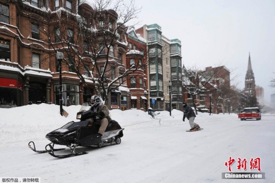 原标题:美国波士顿遭遇大雪 市民街头玩雪地摩托(组图)