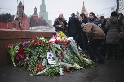 2月28日,在俄罗斯首都莫斯科,俄民众悼念遇害的反对党领导人涅姆佐夫。新华社发