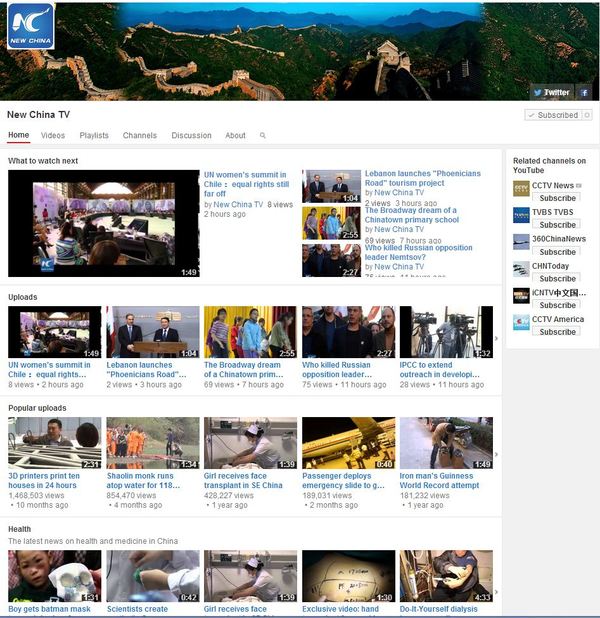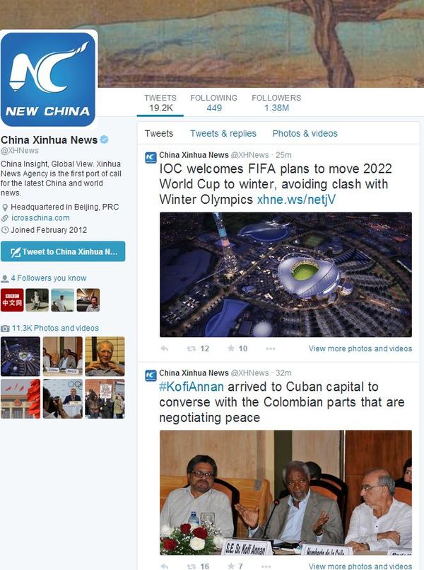 新华社在2013年底开始在脸谱、推特、优兔上开设账号,试水海外社交媒体业务。1日起,新华社把在这三家社交媒体上的账号统一更名为“New China”,每天24小时以文字、图片和视频形式不间断向用户推送中国、涉华和国际新闻。