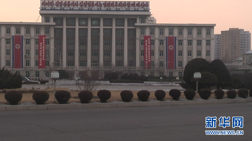 建筑物上面写着伟大的金日成同志和金正日同志永远和我们在一起 新华社记者曾涛摄