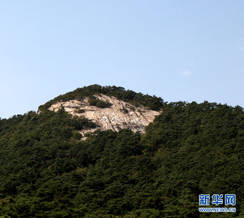 山顶上写着 21世纪的太阳金正日将军 新华社记者曾涛摄