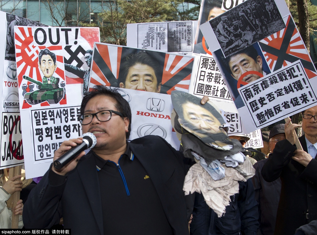韩国民众在日本驻韩使馆门前反日游行(高清组图)