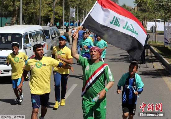当地时间2015年4月6日,伊拉克首都巴格达,伊拉克将4月6日定为国家运动日,上千人参加距离为2公里的“胜利马拉松”,声援伊拉克军队和什叶派武装。