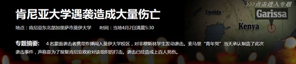 自2011年肯尼亚政府出兵索马里围剿“青年党”以来,肯尼亚国内主要城市及北部边境地区不断遭到该组织的袭击。